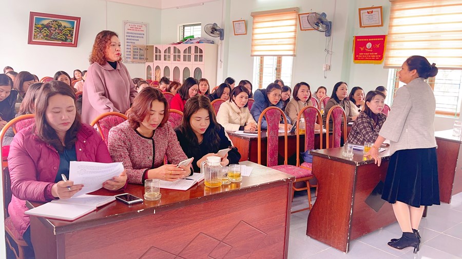 Đ/c Hoàng Thị Thuý - Hiệu trưởng nhà trường tiếp thu ý kiến chỉ đạo