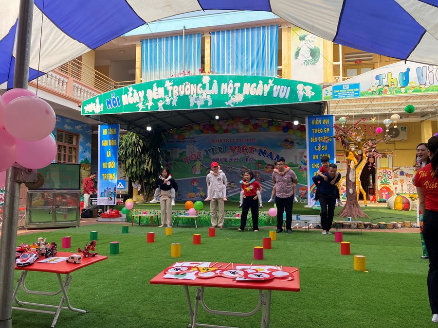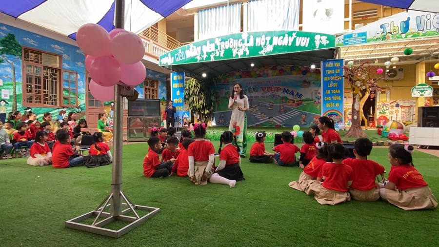 Chương trình có sự tham gia của các bậc phụ huynh cùng các bé khối 3,4,5 tuổi, với các tiết mục văn nghệ chào mừng, những trò chơi tìm hiểu về an toàn giao thông, đặc biệt nhà trường đã sử dụng phần mềm quizzi để thiết kế trò chơi tương tác tìm hiểu về luật lệ, và an toàn giao thông cho các bé khối 5 tuổi.