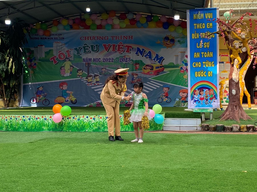 Đ/c Thiếu tá Phạm Thị Bích Ninh- Đội cảnh sát giao thông quận Đồ Sơn giao lưu cùng các bé