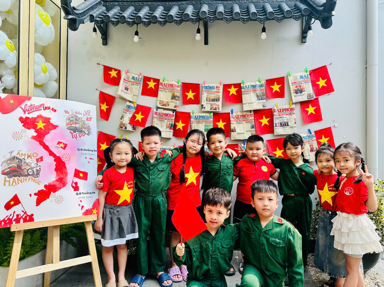 Cùng với sức nóng của tinh thần yêu nước của cả dân tộc, các bé Mầm Non Hải Sơn hân hoan chào đón ngày lễ 30/4 – 1/5. Mỗi nụ cười, mỗi ánh mắt đều là một mảnh ghép trong bức tranh rực rỡ về tình yêu Tổ quốc – được kể lại bằng ngôn ngữ trong trẻo nhất của tuổi mầm non.