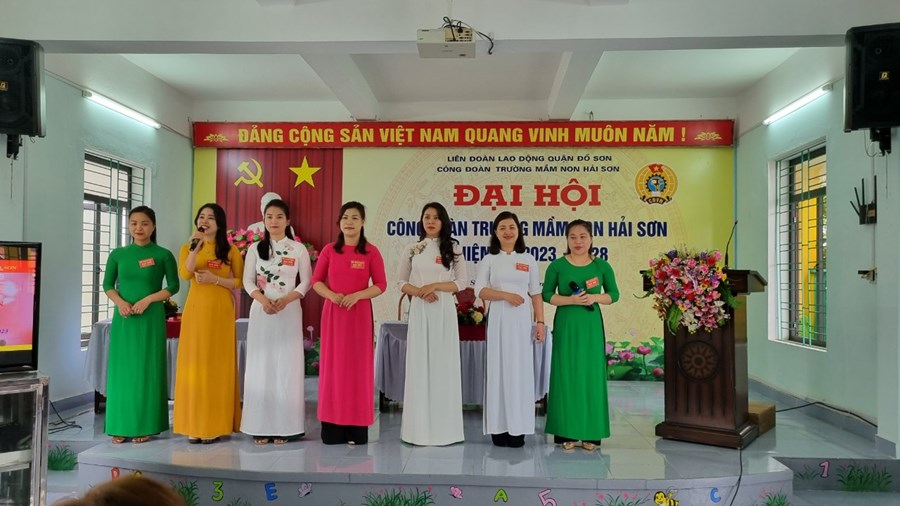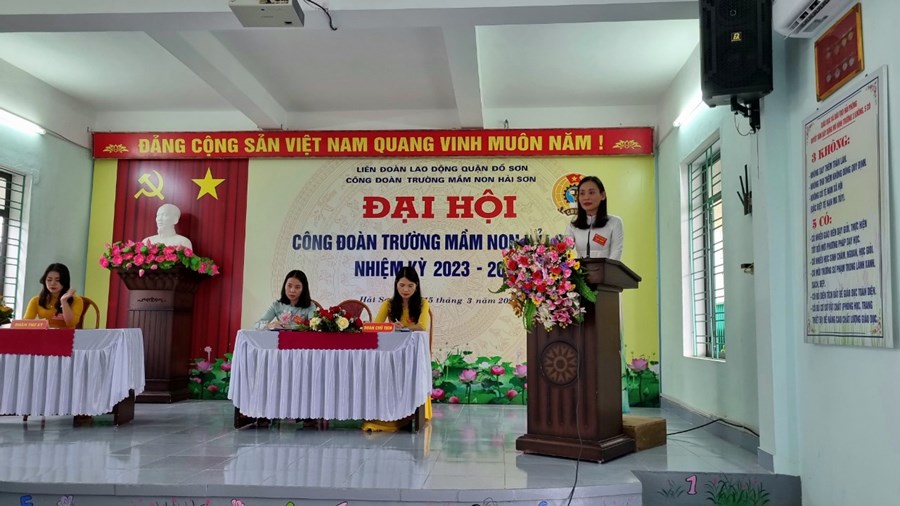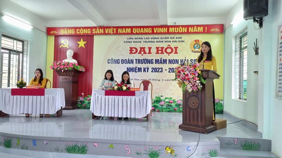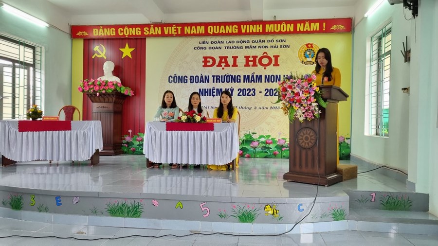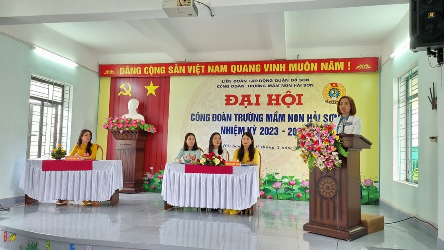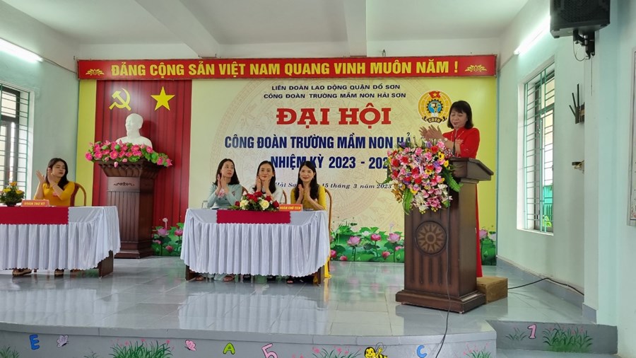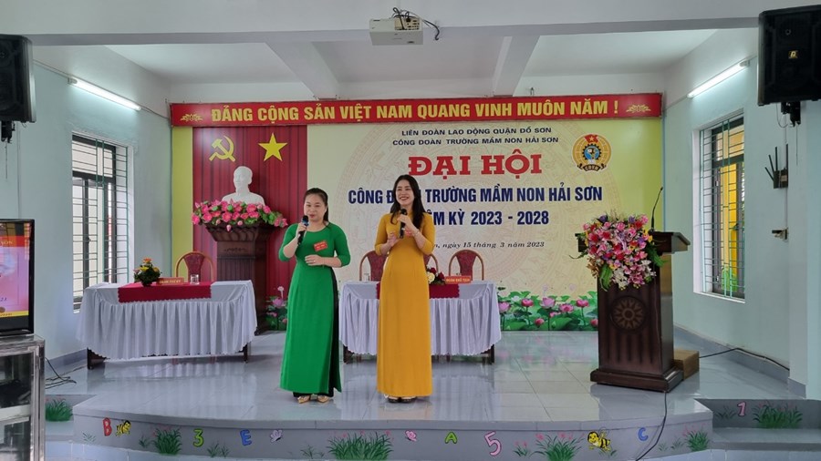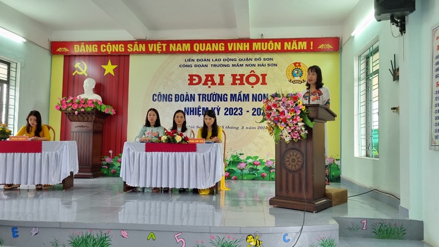 Về dự và chỉ đạo Đại hội có đ/c Phạm Thị Hồng Phương - Phó Chủ tịch Liên đoàn LĐ quận; đ/c Hoàng Thuỳ Dung - Chuyên viên LĐLĐ quận Đồ Sơn; Đ/c Hoàng Thị Thuý - Bí thư chi bộ - Hiệu trưởng nhà trường, cùng 52 đ/c Đoàn viên Công đoàn Mầm non Hải Sơn
