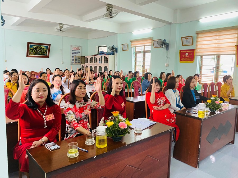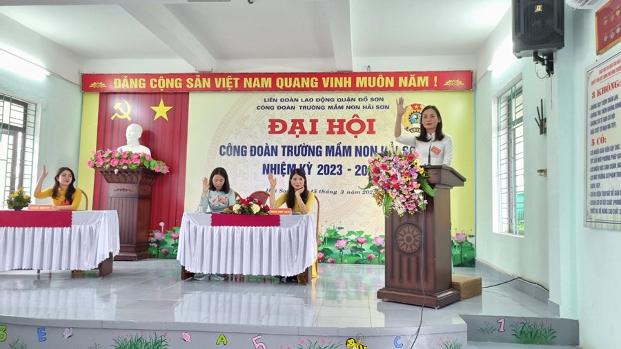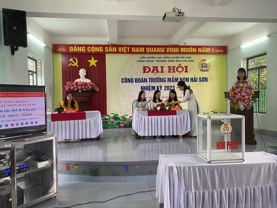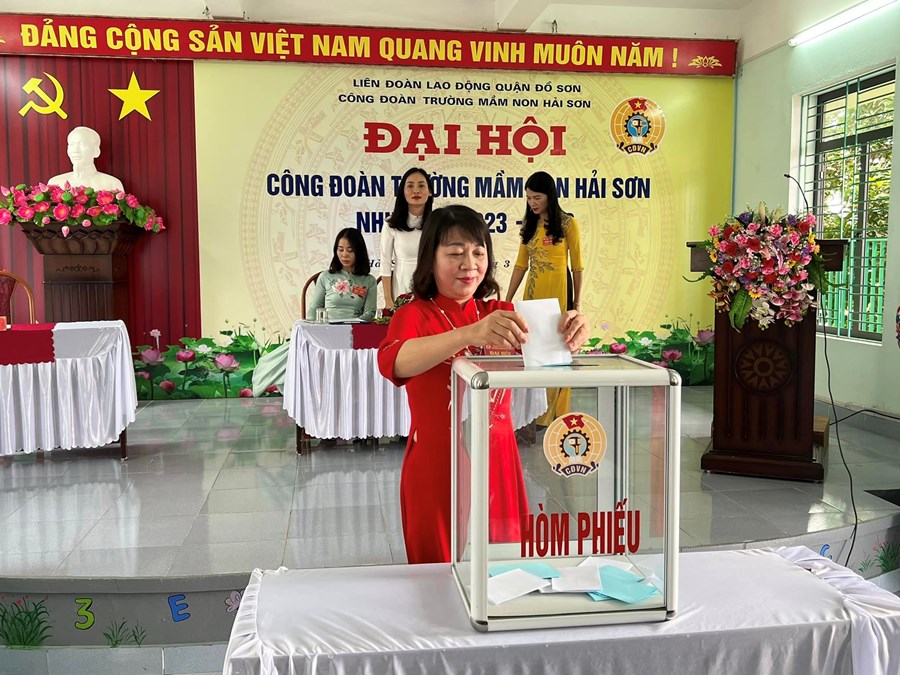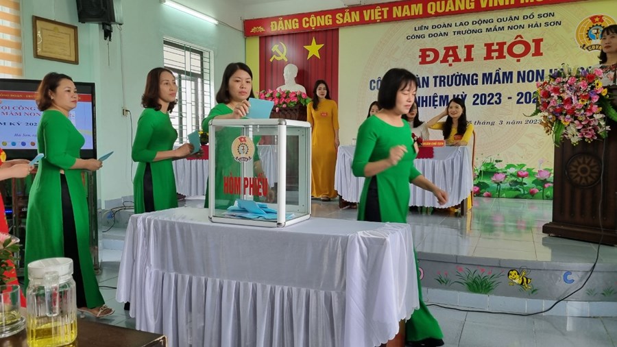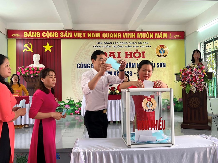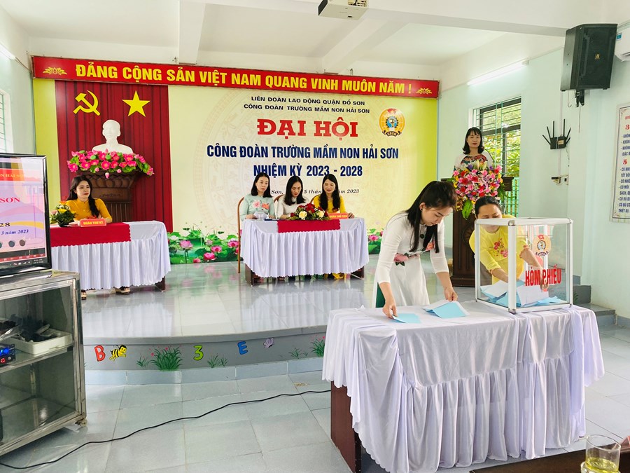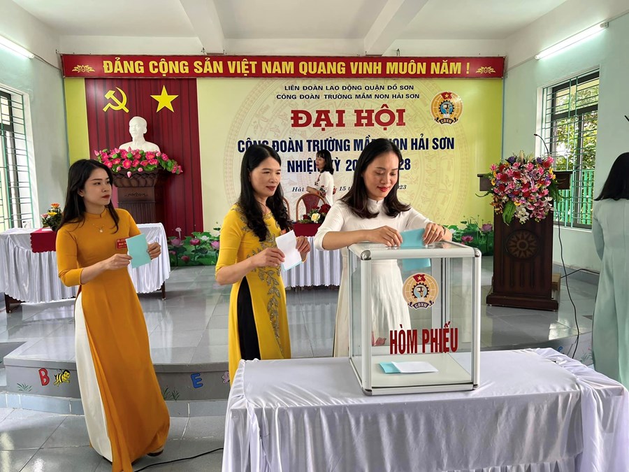 Đại hội đã Tập trung dân chủ, trí tuệ, sáng suốt lựa chọn 05 đồng chí có đủ phẩm chất đạo đức, năng lực công tác, đảm bảo tiêu chuẩn và sự tín nhiệm của cán bộ, đoàn viên, CNVCLĐ Trường Mầm non Hải Sơn vào Ban Chấp hành Công đoàn Trường Mầm non Hải Sơn nhiệm kỳ 2023- 2028 và 02 đồng chí đại biểu chính thức, thay mặt cho toàn thể đoàn viên Công đoàn Trường Mầm non Hải Sơn đi dự Đại hội đại biểu Công đoàn quận lần thứ VIII.