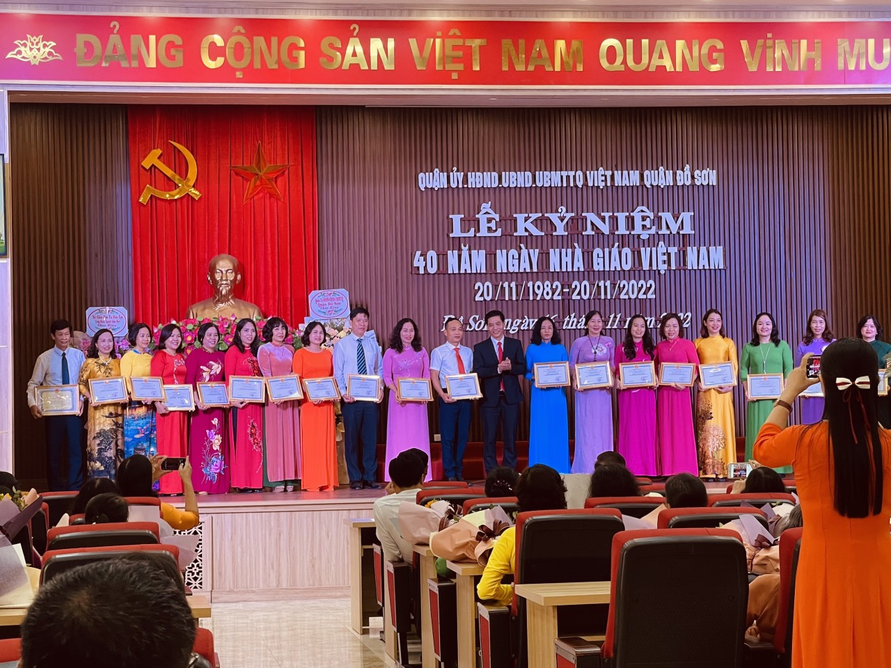 Đ/c Hoàng Thị Thuý - Hiệu trường và 2 giáo viên Lương Thị Yến, Lưu Thị Phương Thảo được tặng Giấy khen vinh danh nhà giáo Tâm huyết - Sáng tạo đã có thành tích tốt trong sự nghiệp Giáo dục quận Đồ Sơn