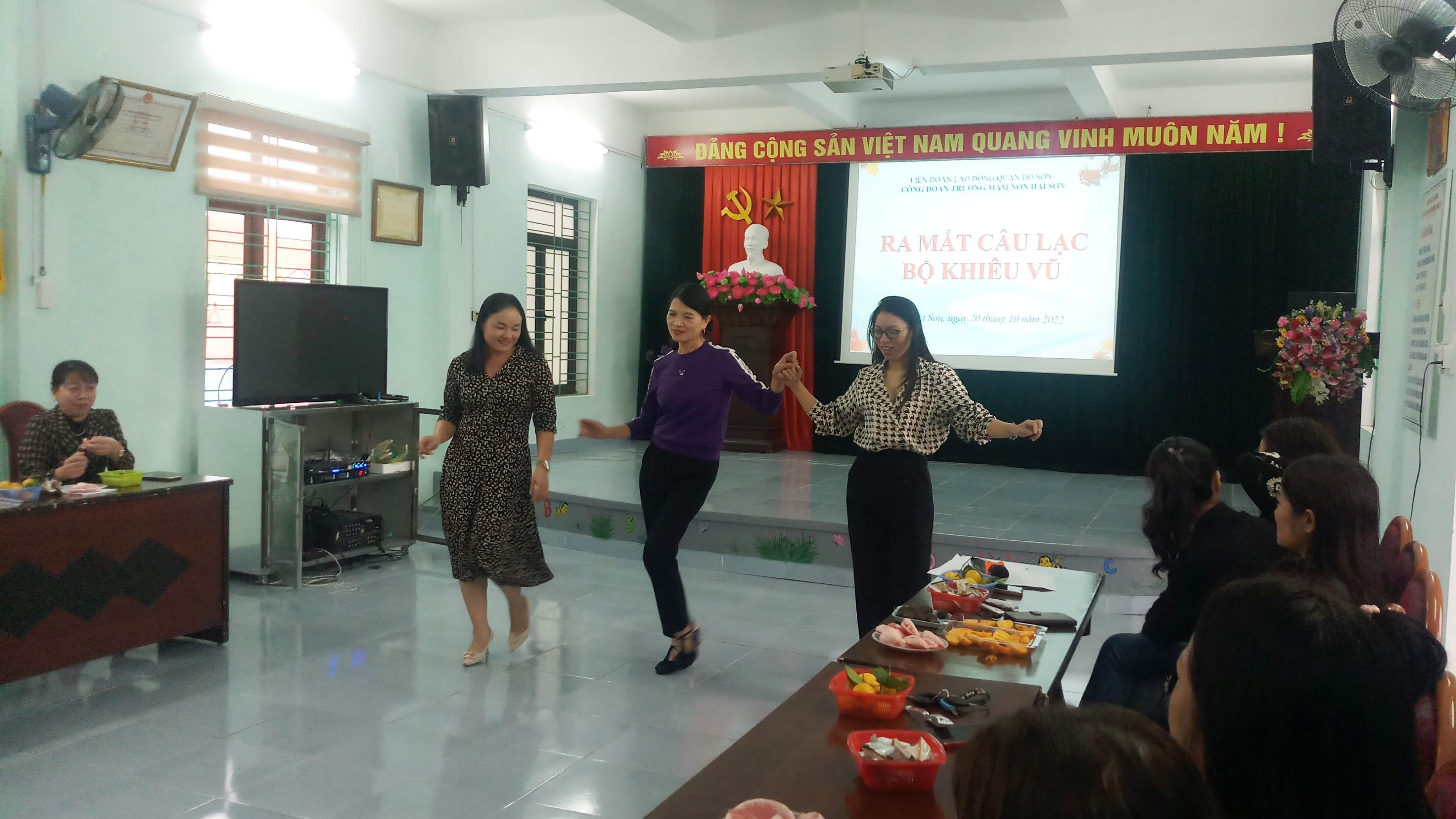 Ngày 20/10/2022 Công Đoàn trường Mầm non Hải Sơn tổ chức Tiếp xúc Kỷ niệm 92 năm Ngày thành lập Hội Liên hiệp Phụ nữ Việt Nam (20/10/1930-20/10/2022) đồng thời ra mắt câu lạc bộ khiêu vũ với sự tham gia của 100 % thành viên là các đoàn viên công đoàn nhà trường , nhằm tạo ra sân chơi lành mạnh,bổ ích, có cơ hội giao lưu, thể hiện năng khiếu của bản thân; đồng thời đây cũng là môi trường để các chị em rèn luyện sức khỏe, từ đó thúc đẩy phong trào văn hóa, văn nghệ, thể dục thể thao của nhà trường phát triển.