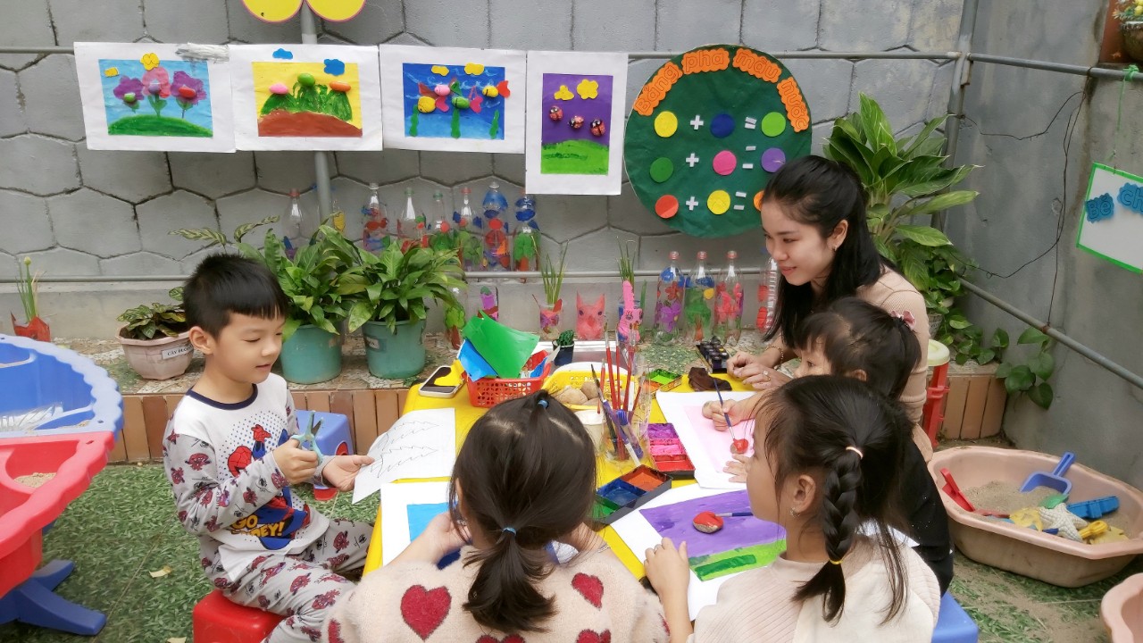sau đây là một số hình ảnh trẻ tham gia làm đồ chơi cùng cô giáo